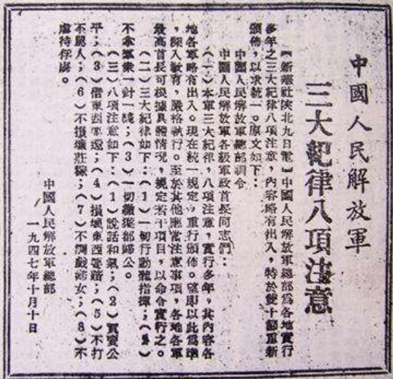 此后无数年岁月里,随着逐渐完善,形成了“三大纪律八项注意”,后来成为了人民军队之基。