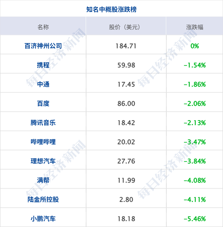 美股低开低走,三大指数均跌超1%,道指跌1.79%,本周累跌1.32%;纳指跌1.3%,本周累跌0.63%;标普500指数跌1.13%,本周累跌0.39%;大型科技股多数下跌,英特尔跌超3%,英伟达跌超2%,苹果、Meta跌逾1%,微软、奈飞、谷歌、亚马逊小幅下跌;特斯拉涨约2%;无人机制造商Airo美国IPO首日收涨140%。中概股多数收跌,纳斯达克中国金龙指数跌2.74%,本周累跌0.77%;房多多跌超9%,文远知行跌超7%,金山云跌超6%,小鹏汽车跌超5%,阿里巴巴、哔哩哔哩、理想汽车均跌超3%,京东、拼多多、百度均跌超2%。