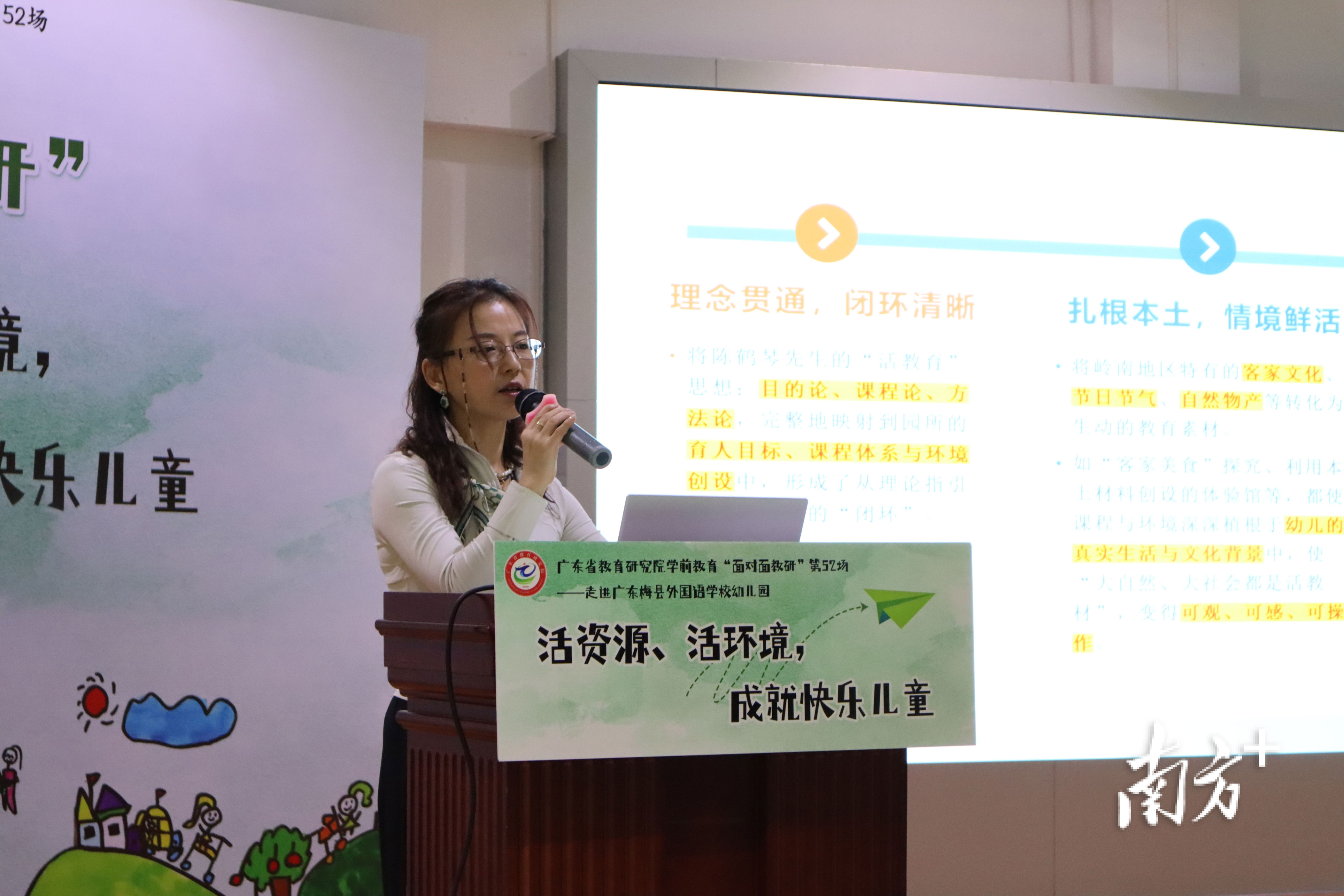 9月25日飞乐乐,广东省教育研究院学前教育“面对面教研”活动首次走进梅州,在广东梅县外国语学校幼儿园举办第52场活动。本次教研活动以“活资源、活环境,成就快乐儿童”为主题,共探“挖掘‘活资源’、打造‘活环境’”,为儿童构建快乐成长空间。